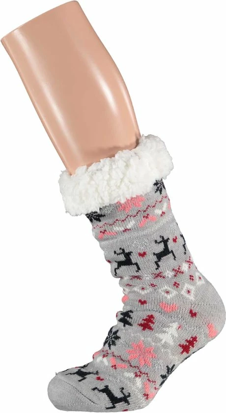 Apollo | Huisokken kerst dames | Multi Grijs | One Size | Sokken kerstmis | Kerstkousen dames | Kerstcadeau dames