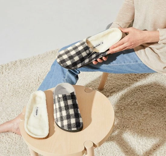 Met de Birkenstock Zermatt pantoffels kies je voor kwaliteit, comfort en instapgemak. De Zermatt-serie onderscheidt zich met een uitneembaar voetbed, wat de mogelijkheid biedt om af te wisselen met de inlegzolen. Zo kun je voor de verschillende seizoenen de juiste inlegzool kiezen. Deze variant wordt standaard geleverd met het heerlijk zachte en warme Shearling Footbed. Het anatomisch gevormde voetbed is voorzien van dekzool met knuffelzacht lamsvel. Perfect voor de koude wintermaanden. Het bovenmateriaal is van zacht wolvilt en voorzien van stijlvol ruitjesmotief. Het biedt een aangenaam voetklimaat met een constante temperatuur en uitstekende vochtabsorptie. De onderzijde is afgewerkt met latex voor goede grip op gladde ondergronden.