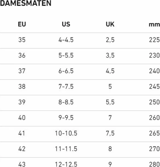 | Maat | 40, 41, 42, 43, 44, 45, 46 |