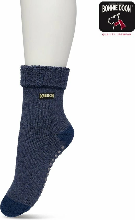 Bonnie Doon Huissokken Met Anti-Slip Voor Dames Jeans Blauw Maat 36/42 – Warme Slofsokken – Badstof Binnenzijde – Zeer Zachte Winter Sokken – Thuis Sokken – Home Socks – Niet Knellend – Gladde Naden – Katoen – Gemeleerd – Jeans Heather – BP211124