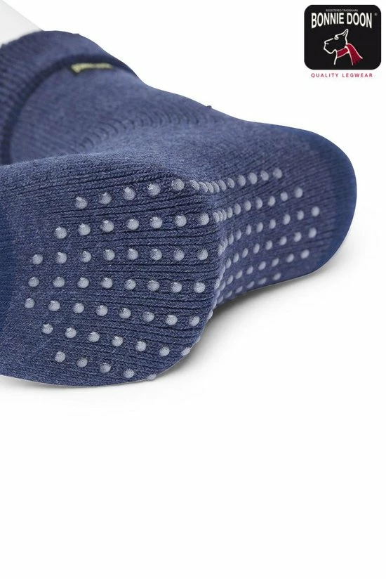 Zacht en warm zijn deze heerlijke katoenen anti slip huissokken. Door de fijne badstof binnenzijde voelt het alsof je op wolken loopt en de anti slip zorgt voor goede grip op gladde vloeren. De met contrastkleur afgewerkte rechte bovenkant kan ook als omslag gebruikt worden.Geeft een leuk effect en voorkomt bovendien een knellend gevoel op het been. Hierdoor zitten de sokken extra comfortabel. 86% cotton, 10% polyamide, 4% elastane