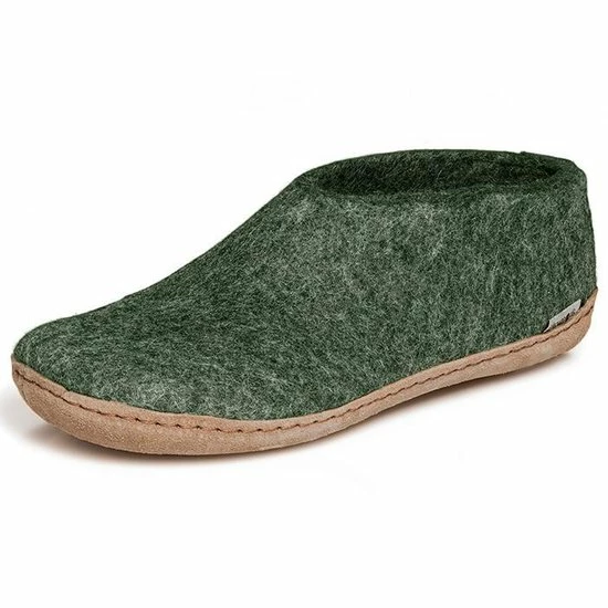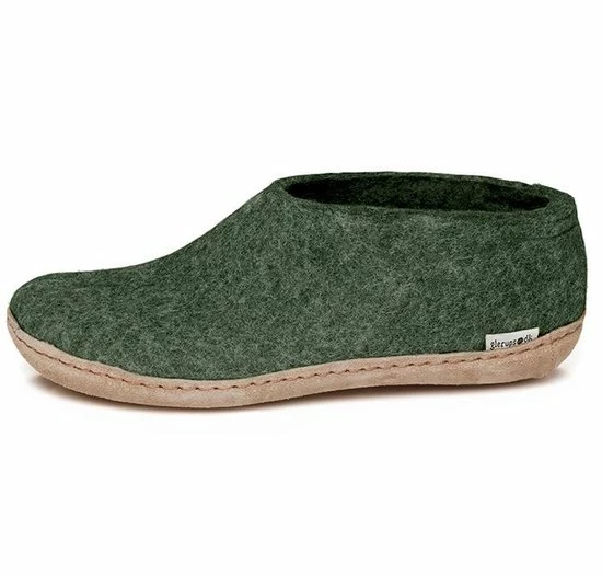 Glerups schoen met leren zool, de comfortabele vilten pantoffel voor thuis of op kantoor.