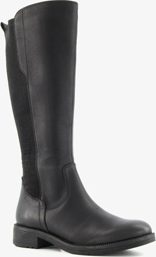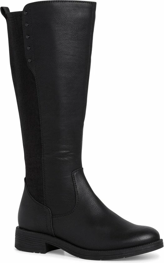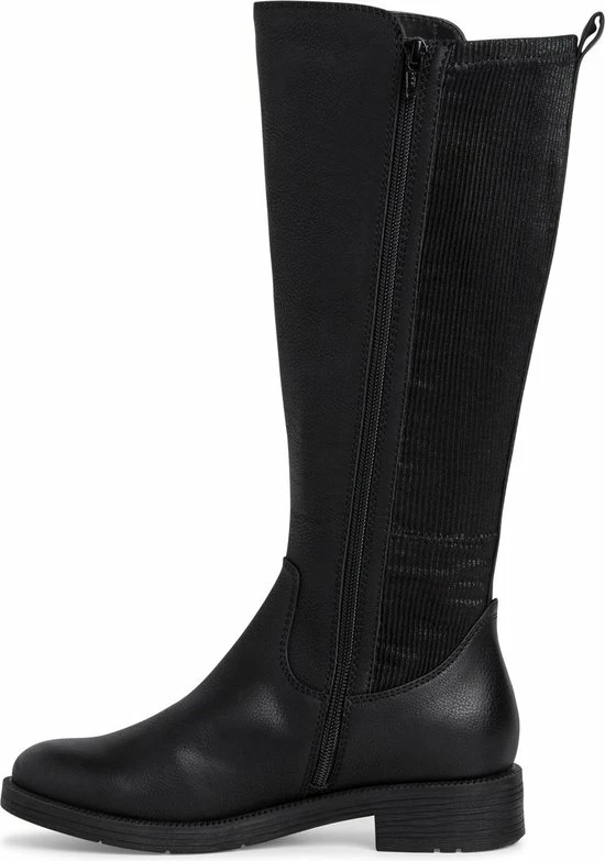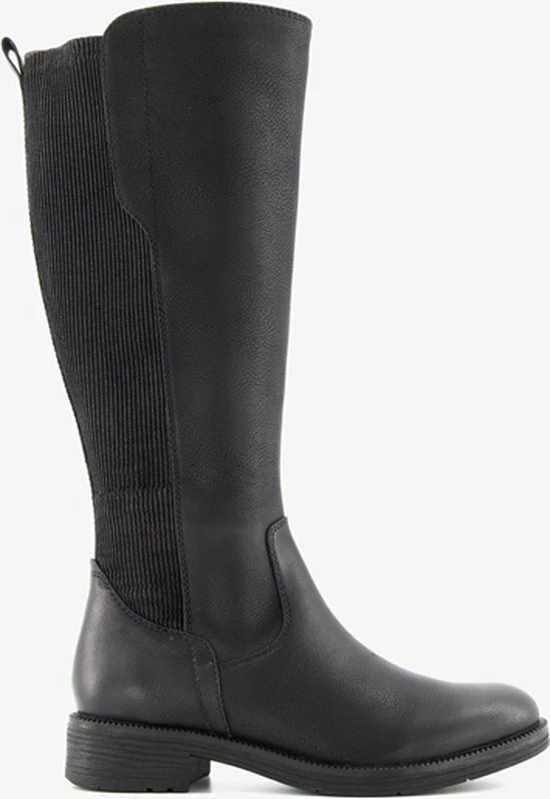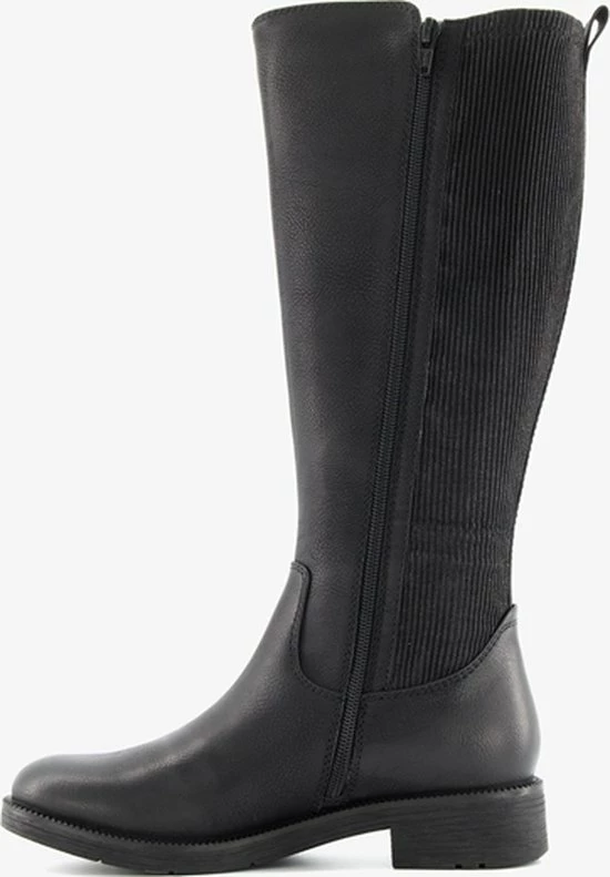 Hoge zwarte dames laarzen van Jana. Deze veelzijdige laarzen hebben een wijde pasvorm waardoor ze erg comfortabel zitten. Gemaakt van textiel met zolen van imitatieleer. Schachthoogte is 28 cm. Binnenzool is niet uitneembaar.