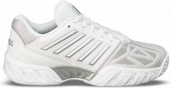 De K•Swiss Bigshot Light 3 Omni biedt veel draagcomfort en zit dicht op het baanoppervlak wat zorgt voor een uitstekend ‘laag bij de grond’ gevoel. De schoen is erg licht, maar beschikt tegelijkertijd over een hoge duurzaamheid en biedt veel ondersteuning. De schoen heeft een iets wijdere pasvorm en beschikt over een bovenzijde van synthetisch leer die zorgt voor een comfortabele pasvorm. Bovendien zorgt het waterafstotende effect van de bovenzijde ervoor dat de schoen niet zwaar wordt en de voet droog blijft. De mesh tong en ventilatiegaatjes in het bovenwerk zorgen voor een hoog ademend vermogen en uitstekende ventilatie. De ‘heel grip lining’ vermindert slijtage op de hiel van de schoen en de ‘Plantar Support Chassis’ verhoogd daarnaast de stabiliteit in de schoen. De K-EVA tussenzool zorgt voor maximale schokdemping en extra duurzaamheid. De tussenzool bevat tevens de ‘GuideGlide’ constructie en garandeert een comfortabele en stabiele loopbeweging. De rubberen Aosta 7.0 buitenzool heeft een hoge dichtheid wat zorgt voor een hoge duurzaamheid van hiel tot teen. De Durawrap en DragGuard in de buitenzool zorgen voor een extra laag bescherming op essentiële steunpunten van de schoen. De slijtvaste omnicourt zool zorgt dankzij het profiel voor grip op zowel hardcourt-, smashcourt-, kunstgras- en gravelbanen.