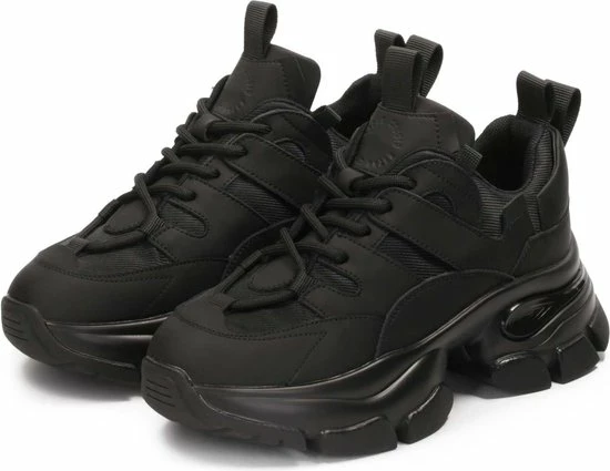 Kazar Studio Moderne Zwarte Damessneakers Van Gecombineerde Materialen