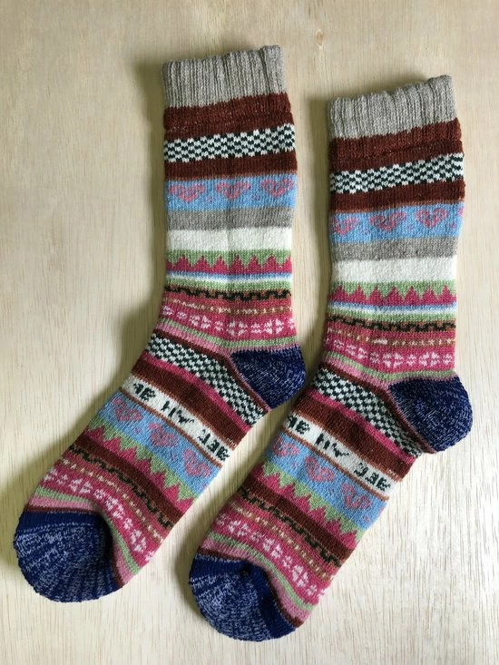 Deze sokken zijn in een vrolijk Scandinavisch kleurrijk design.
