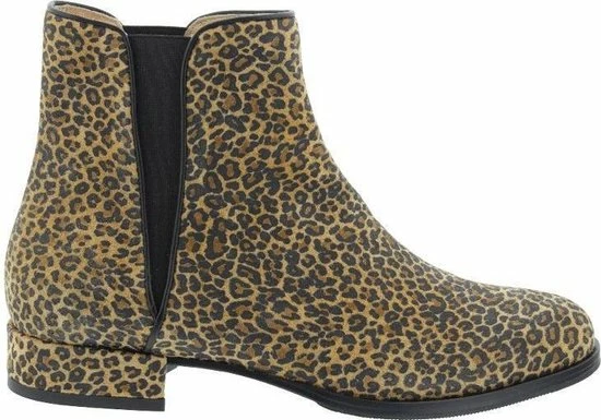 Ga voor de zelfverzekerde look met dit stijlvolle enkelaarsje van Mrs Kris. De schoenen van dit Nederlandse merk staan voor comfortabele pasvormen in Hwijdte en extra ruimte voor de tenen, maar ontworpen met Italiaanse allure. Dit model is uitgevoerd in zacht nappaleer met een trendy luipaardprint. Binnenin is het enkelaarsje gevoerd met gladleer en voorzien van een uitneembaar, met leer bekleed voetbed. De ritssluiting aan de zijkant zorgt voor instapgemak, waar de elastiekinzet aan de andere zijkant zorgt voor een pasvorm die zich optimaal naar de voet aanpast. Opvallend detail zijn het blokhakje bekleed met hetzelfde materiaal als het bovenwerk en de oranje afwerking aan de onderkant als subtiel Nederlands tintje. Het hakje is ca. 3 centimeter en de schacht is 14 centimeter hoog, gemeten bij maat 38.