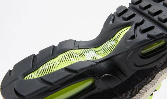 De Air Max 95 doet ook een ode aan de OG colorway van de sneaker. De DENHAM Air Max 95 heeft namelijk een Volt colorway gekregen. Donkere en lichtere denim bevindt zich op het bovenwerk met volt details in de laceholders, Swoosh en Air Units. Een mooi detail is geplaatst op de outsole waarop staat “THE TRUTH IS IN THE DETAILS”. De sneaker wordt afgerond door een zwarte midsole.