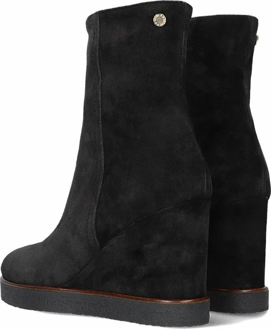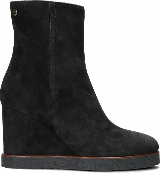 De elegante, Italiaanse ontwerpen van het merk Notre-V zijn er voor de verfijnde vrouw die er graag effortless chic uitziet. Gemaakt van luxe materialen met subtiele accenten en een knipoog naar de laatste trends. Deze enkellaars 9636 is gemaakt van zwart suède en heeft een handige ritssluiting aan de zijkant. Leuke details zijn de goudkleurige merkstud aan de achterkant van de schacht en de bruine inzet op de zoolrand. De schoen heeft een elegante sleehak van 9,5 centimeter hoog en een schachthoogte van 15,5 centimeter (gemeten bij maat 38). Het binnenwerk is gemaakt van leer en het vaste voetbed is onder de hiel opgevuld voor extra comfort. De rubberen zool heeft een gripvast profiel en zorgt voor voldoende stabiliteit bij iedere stap. Combineer de laarsjes met een rok of jurk en je bent ready to go!
