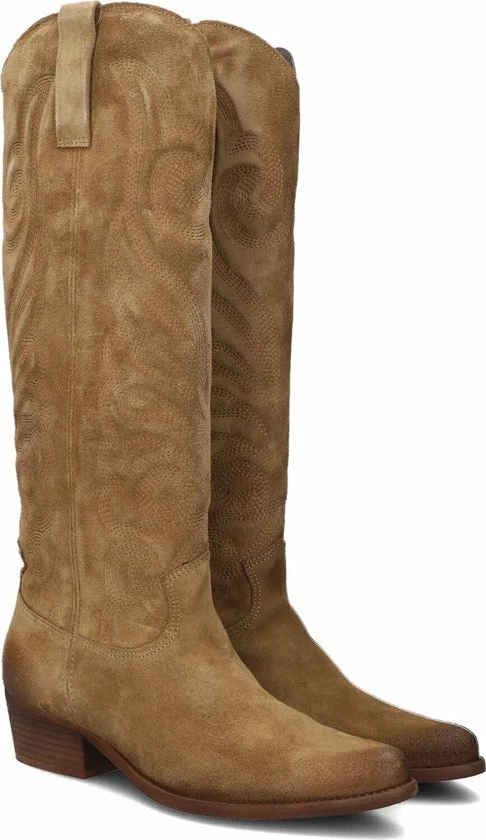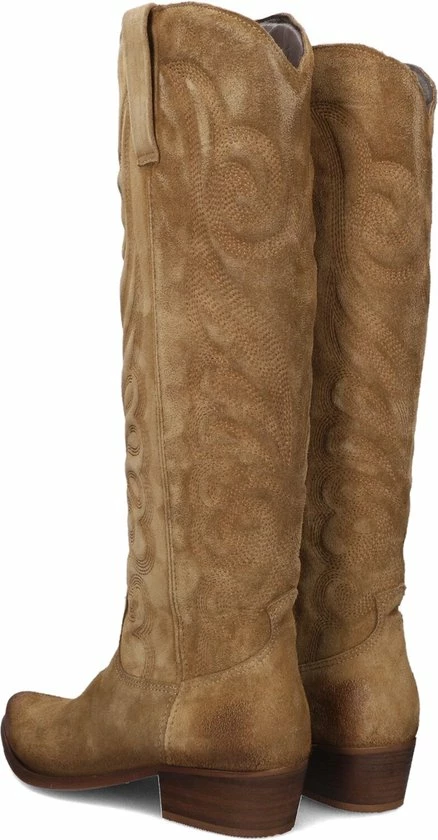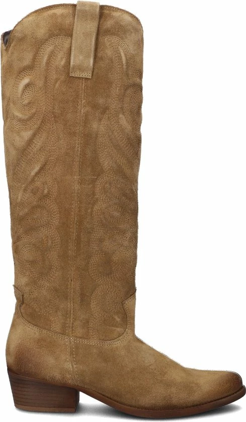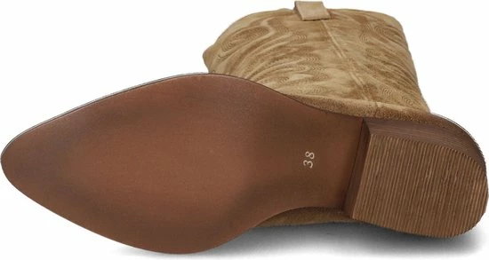 Ga voor een opvallende, stoere look met deze bruine lange cowboylaars D435 van het eigen Omoda merk. Deze cowboylaars heeft een uitgesneden schacht met twee aantreklussen aan de zijkant. De schacht is voorzien van gewatteerde vlammenpanelen en versieringen met fraai stikselwerk. Daarnaast heeft de laars een spitse neus en een stevige, gelaagde westernhak. Het bovenwerk is uitgevoerd in hoogwaardig suède en de binnenvoering is van leer en zacht textiel met een vast voetbed. De rubberen zool geeft de laars een goede grip en de gelaagde hak heeft een hoogte van ruim 4 centimeter. De schacht is 39 centimeter hoog. Draag ze ultra feminin met een rok of jurk of superstoer onder een jeans!
