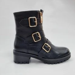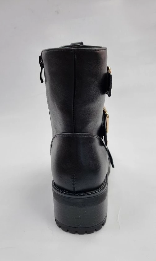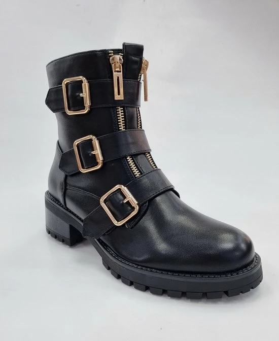 Het product is een modieuze bikerboots. Het product is gemaakt van kunstleer. Het heeft een ritssluiting aan de binnezijde, waardoor je gemakkelijk kunt aantrekken. Verkrijgbaar in maten 36,37,38,39,40,41 .