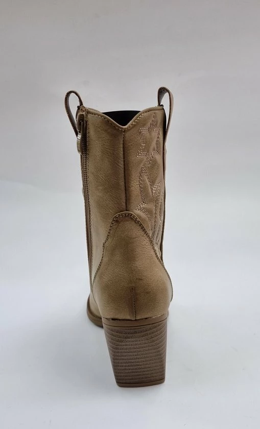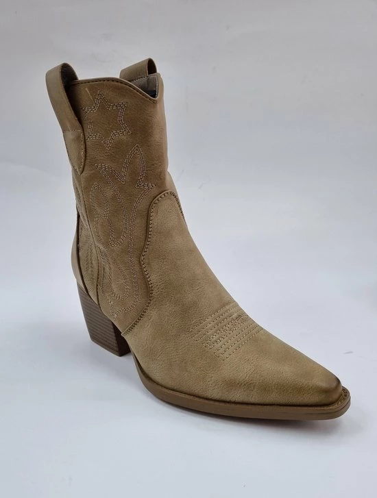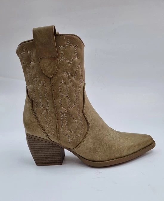 Het product is een modieuze westernlaars. Het is gemaakt van kunstleer. Deze pasvorm valt normaal. Het heeft een korte ritssluiting aan de binnezijde ,waardoor je gemakkelijk in kan schieten. Verkrijgbaar in maten 36, 37, 38, 39, 40, 41 .