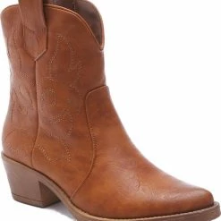 Weloveshoes SmileFavorites® Dames Cowboylaarzen Met Hak Kort – Imitatieleer – Camel – Maat 37