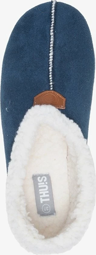 Blauwe pantoffels voor dames van Thu!s. Gemaakt van textiel, een zachte voering van textiel en een stevige zool.