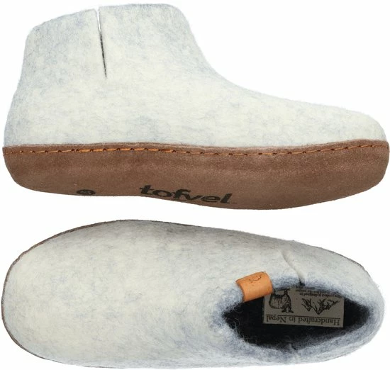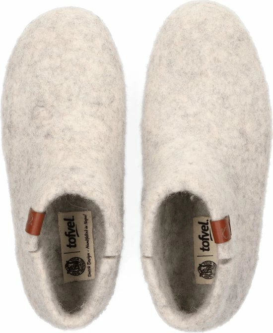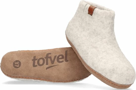 Tofvel Mula beige pantoffels dames en heren Geniet thuis van heerlijk warme voeten met deze comfortabele Tofvel pantoffel. De Tofvel is voor zowel dames als heren en verkrijgbaar in maat 35 t/m 47. Ben je op zoek naar heerlijk warme wollen sloffen? Dan hoef je niet verder te zoeken. De pantoffels van Tofvel zitten heerlijk en houden de voeten aangenaam op temperatuur. Lekker warm in de winter en koel in de zomer. De duurzame sloffen worden met de hand vervaardigd in Nepal, zonder toepassing van chemicaliën. De schacht van de pantoffel bestaat uit één geheel, gemaakt van 100% wolvilt afkomstig van vrij grazende schapen. De zachte zool is alleen geschikt voor binnenshuis, maar biedt hier wel goede grip op de gladde vloeren. De sloffen zijn een genot om te dragen en dankzij de gebruikte materialen hebben ze een aantal fijne eigenschappen. Het wolvilt is ademend en houdt de voeten comfortabel op temperatuur. Kleur: beigeMateriaal bovenwerk: wol, vilt