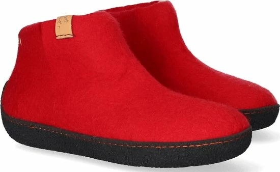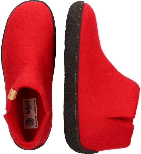Tofvel Rabara pantoffels rood Geniet thuis van heerlijk warme voeten met deze comfortabele Tofvel pantoffel. De Tofvel is voor zowel dames als heren en verkrijgbaar in maat 35 t/m 47. Ben je op zoek naar heerlijk warme wollen sloffen? Dan hoef je niet verder te zoeken. De pantoffels van Tofvel zitten heerlijk en houden de voeten aangenaam op temperatuur. Lekker warm in de winter en koel in de zomer. De duurzame sloffen worden met de hand vervaardigd in Nepal, zonder toepassing van chemicaliën. De schacht van de pantoffel bestaat uit één geheel, gemaakt van 100% wolvilt afkomstig van vrij grazende schapen. Naast een eerlijk inkomen voor de makers, ondersteunt het merk de makers en kinderen door een deel van de opbrengst af te staan ten behoeve van onderwijs. Een Tofvel is dus niet alleen duurzaam, maar ook nog eens fair trade. Om het nog maar niet te hebben over het hoge draagcomfort die ze bieden. Tofvel, model Rabara, is door de aanwezigheid van de rubber loopzool tevens geschikt voor buitenshuis Kleur: roodMateriaal bovenwerk: wol, vilt
