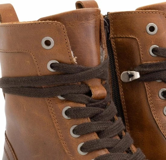 Stoere hoge veterschoenen van het merk Travelin’ met extra lange veters en rits. De leren laars is volledig wol gevoerd en heeft net als alle laarzen van Travelin’ een uitneembare inlegzool met een toplaag van wol. De rubberen zool met grof profiel zorgt voor extra grip en stabiliteit.
