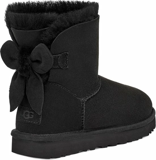 Deze vernieuwde Bailey is gestyled met een strik van zachte sheepskin en heeft dezelfde zachte feel en flexibele zool als het origineel. Ugg Mini Bailey Fluff Bow Laarzen Zwart – Dames Laarzen – 1123635-BLK Deze vernieuwde Bailey is gestyled met een strik van zachte sheepskin en heeft dezelfde zachte feel en flexibele zool als het origineel. Hij is gevoerd met onze heerlijk zachte UGGplush-wolmix en afgewerkt met een duurzame Treadlite by UGG-buitenzool voor extra demping en grip. * Bovenstuk van 17 mm dikke dubbelzijdige sheepskin * Vaste strik, pompon van sheepskin, suède hielkap * Voering van 17 mm dik sheepskin * Inlegzool van 17 mm UGGplushâ„¢; 80% geüpcyclede wol, 20% lyocell * Buitenzool van Treadlite by UGGâ„¢ voor comfort * Stoffen binding gemaakt van 100% gerecyclede polyestervezels * Schachthoogte 14 cm * Suède hiellabel met UGG®-logo in reliëf