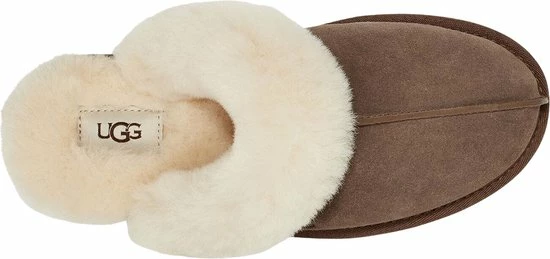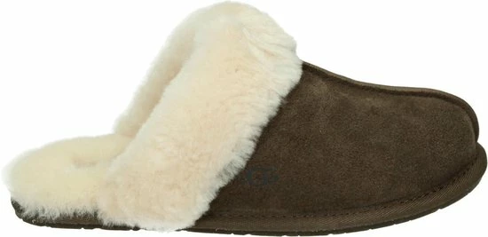 Deze Scufette II van UGG is een mooie huispantoffel. De slof is gestyled met een pluche kraag en uitgevoerd in zachte suède. De voering van de Scufette II is 17 mm dik met de kenmerkende sheepskin van UGG. Een zool van gevormd rubber rondt deze stijl af. De slof past goed bij de heerlijk zachte badjassen van UGG, of een bijpassende pyjama van kasjmier voor ultieme luxe.