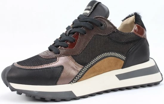 Mixen & matchen met kleuren en materialen. Deze trend hebben we doorvertaald naar de Posy Dash. In de basis een chunky en sporty sneaker, maar tegelijkertijd stijlvol en vrouwelijk. De zool is een echte blikvanger: dynamische noppen en een hoekige afwerking aan de achterkant van de zool. De combi van leer, suède en mesh geeft deze zwarte sneakers een uniek uiterlijk. Alles wat je zoekt, én meer!